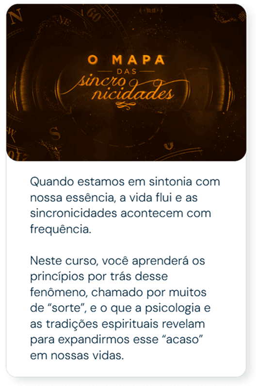 Neste curso, você aprenderá os princípios por trás desse fenômeno, chamado por muitos de “sorte”, e o que a psicologia e as tradições espirituais revelam para expandirmos esse “acaso” em nossas vidas.