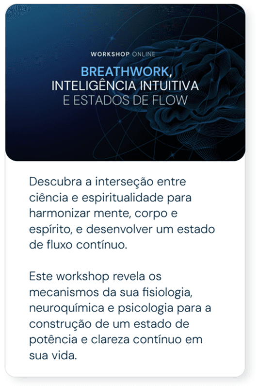 Este workshop revela os mecanismos da sua fisiologia, neuroquímica e psicologia para a construção de um estado de potência e clareza contínuo em sua vida.