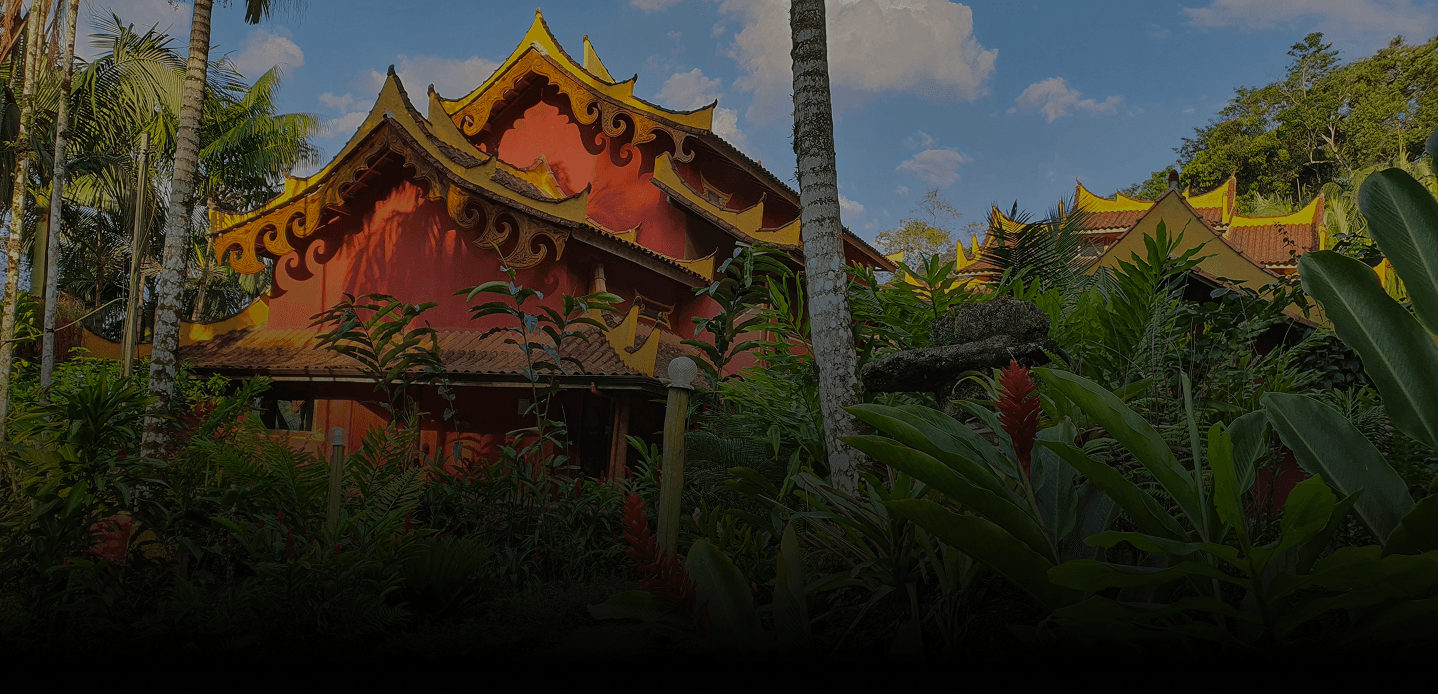 Os móveis artesanais feitos pelos residentes e o toque oriental criam uma atmosfera rústica e harmoniosa. Assim, o misticismo da Índia se funde à natureza exuberante da Mata Atlântica.